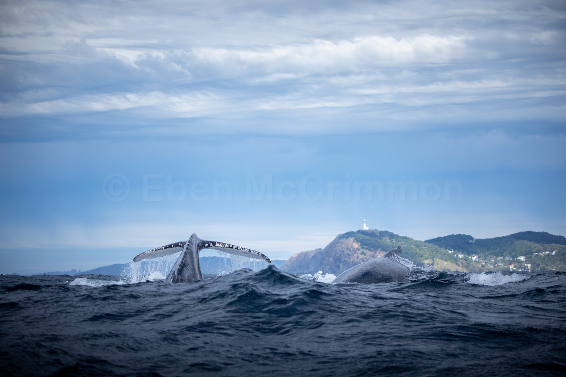 Humpback whales navigating choppy waters as they pass the most easterly point of Australia on their way North