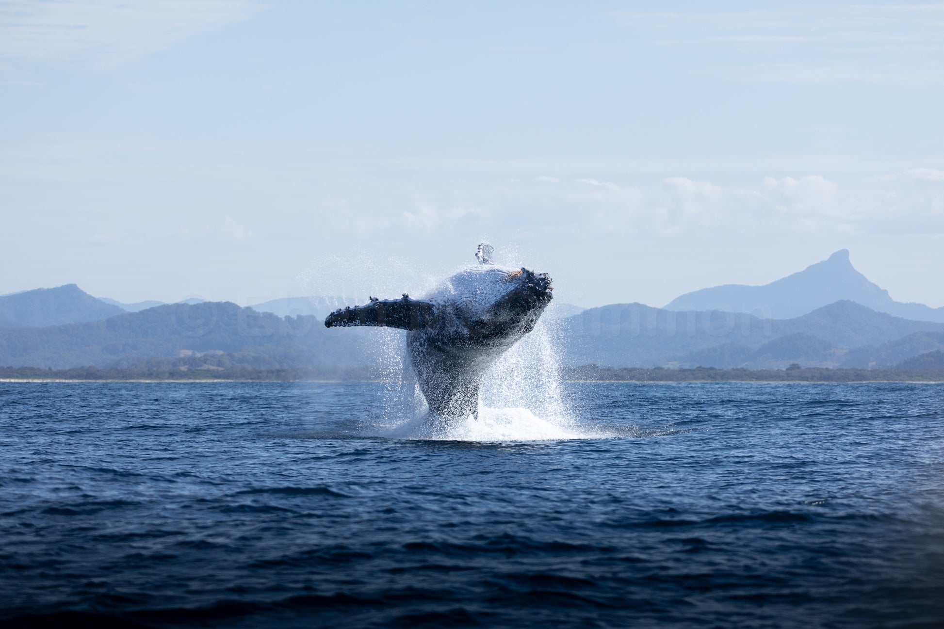 Mighty Humpback rolling breaches against the Wollumbin Hinterland